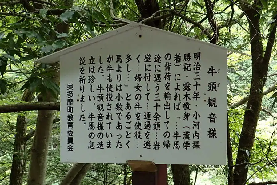 奥多摩むかし道に牛頭観音が祀られています。往時は牛馬により荷物を輸出していたようで馬のほか牛も使用されていたと言います。