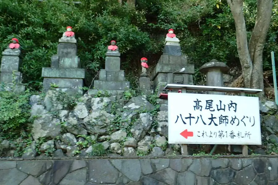高尾山には高尾山内八十八大師の石仏があります。明治36年(1903)に薬王院の志賀照林大僧正が東国の信徒のために八十八ヶ所の霊場の土を持ち帰り大師像の下に納め安置したものと言います。