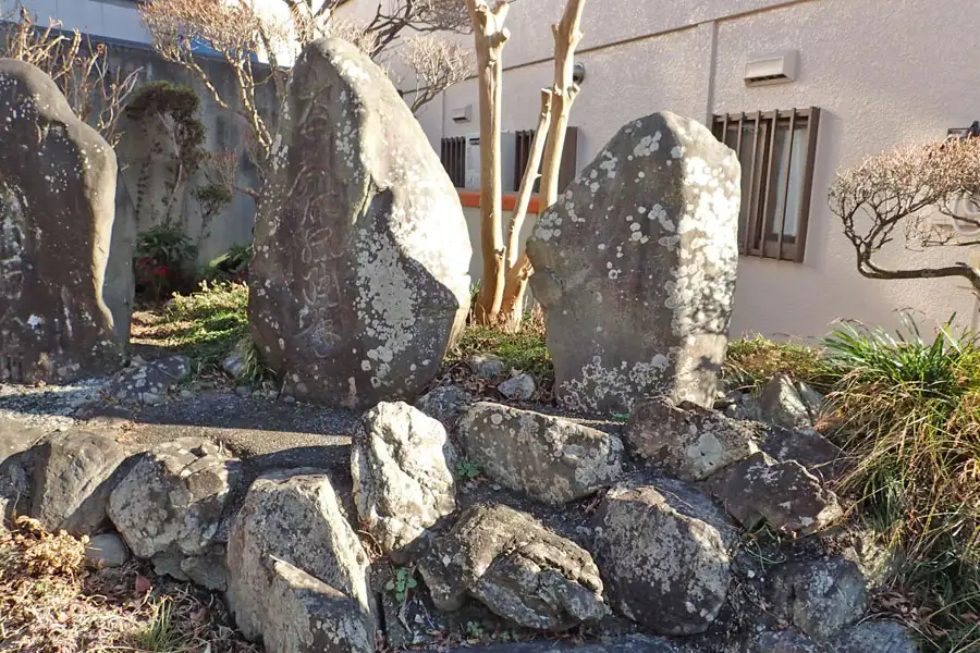 平山城址公園から下ってきた住宅地の中に庚申塚や馬頭観音の石碑があります。かなり古いもののようで石面が風化したものもあります。