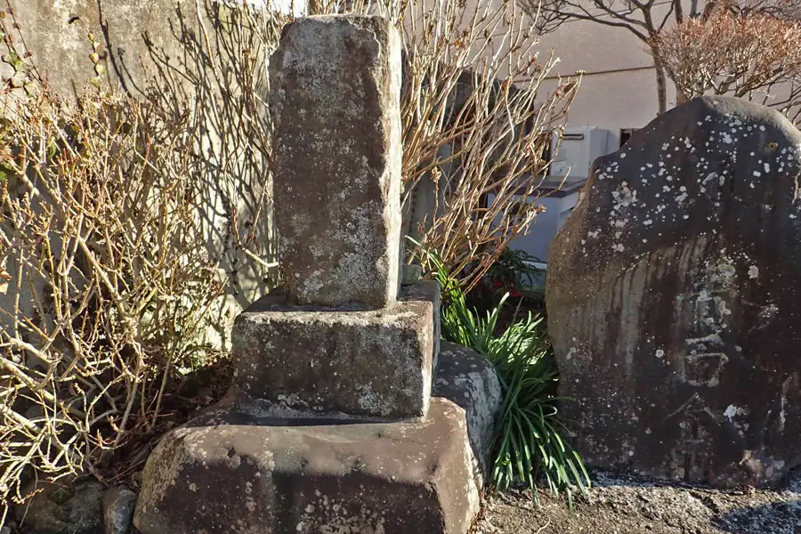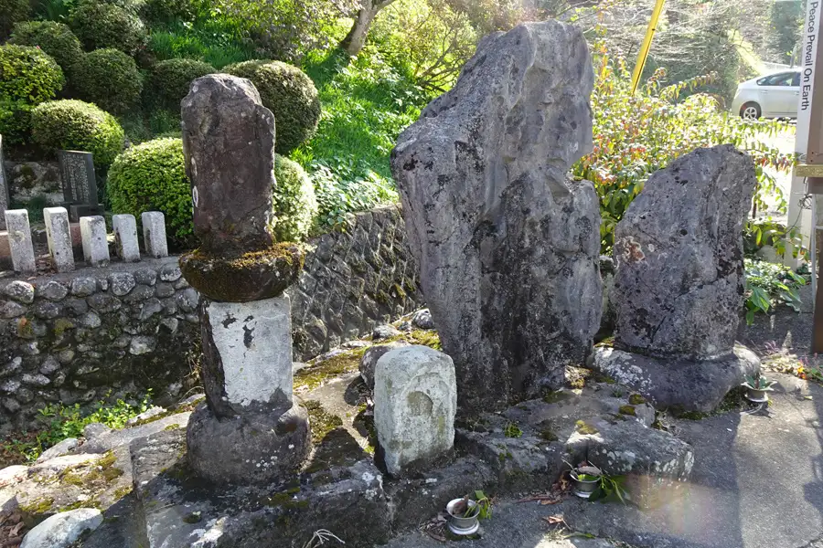 道端に苔むした五輪塔と石仏が祀られています。石仏は風化していますがGoogleMapでは馬頭観音になっています。