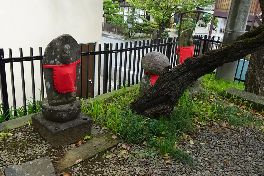 かつての萬松寺の参道に六地蔵があります。近くの廃寺から1体が移され7体のお地蔵さんになっています。