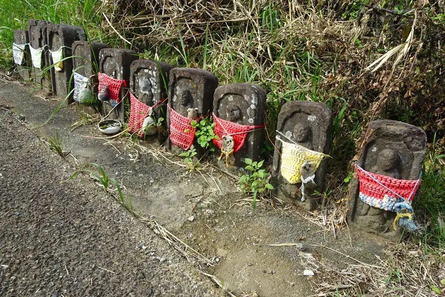 野津田公園に登って行く道端にたくさんの野仏が祀られています。鎌倉街道が通ていたとされるところです。