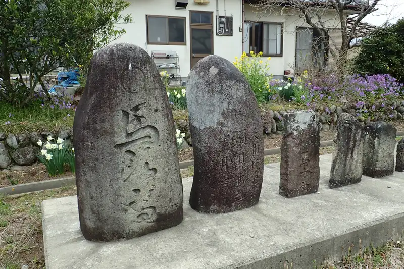古峰ヶ原街道の下沢大関橋近くにたくさんの石碑が祀られています。石面には馬頭尊、馬頭観音、馬力神などと刻まれているようです。