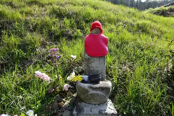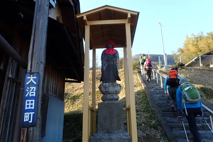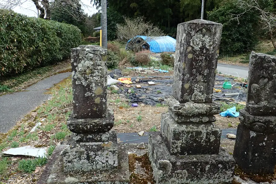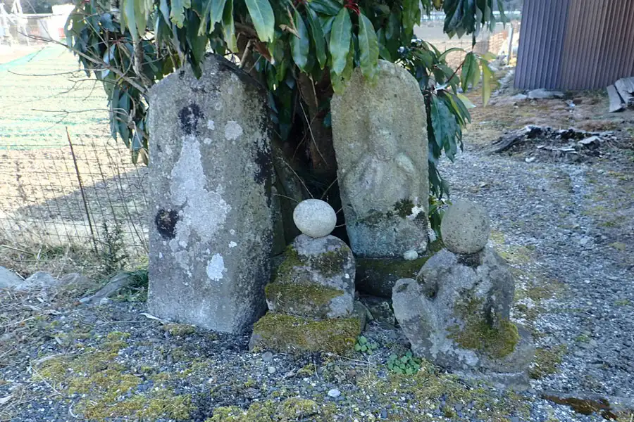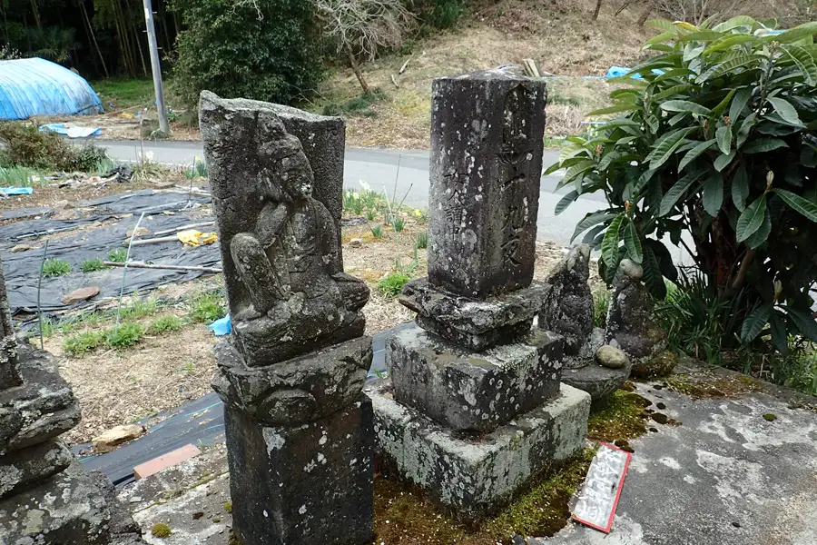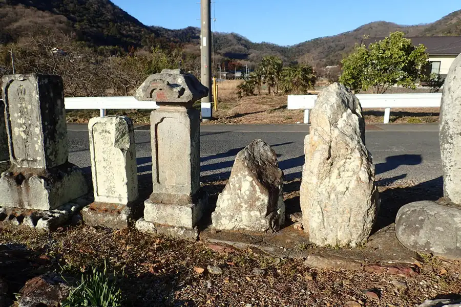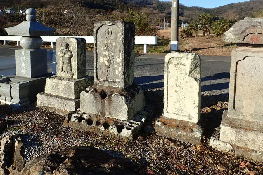 二股山の登山口のお堂に延命地蔵尊が祀られています。傍には古い石仏や十九夜塔が祀られていました。