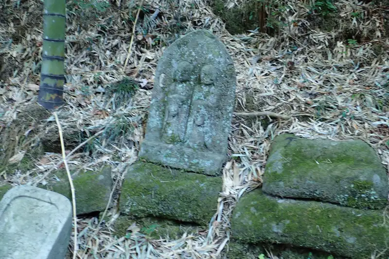 光顕寺側の墓地にたくさんの石仏がありました。その中に石面が風化した道祖神もありました。