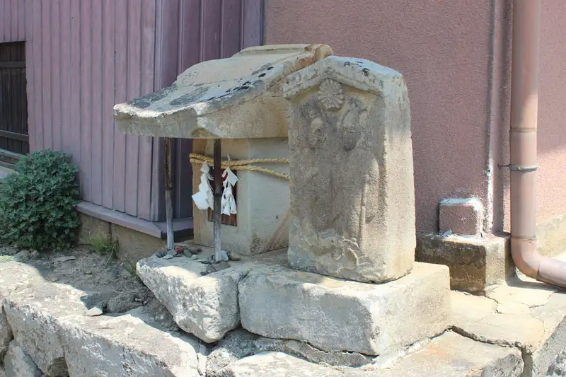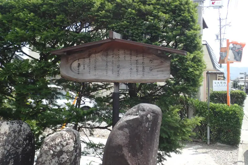 大きな石は力石、若者の力自慢に使われたものと言います。