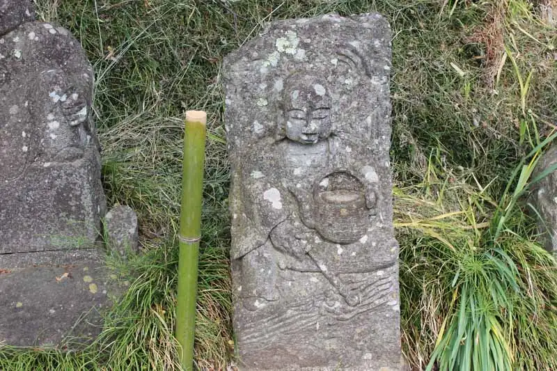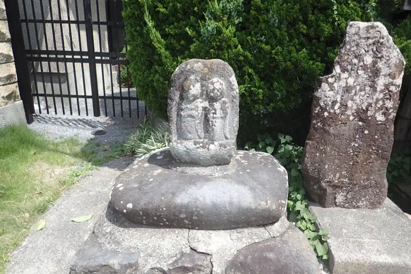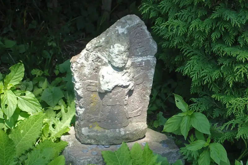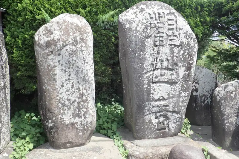 諏訪大社上社前宮の参道に古い石仏がありました。観世音と刻まれた石碑のほか双体道祖神の石像などもあります。