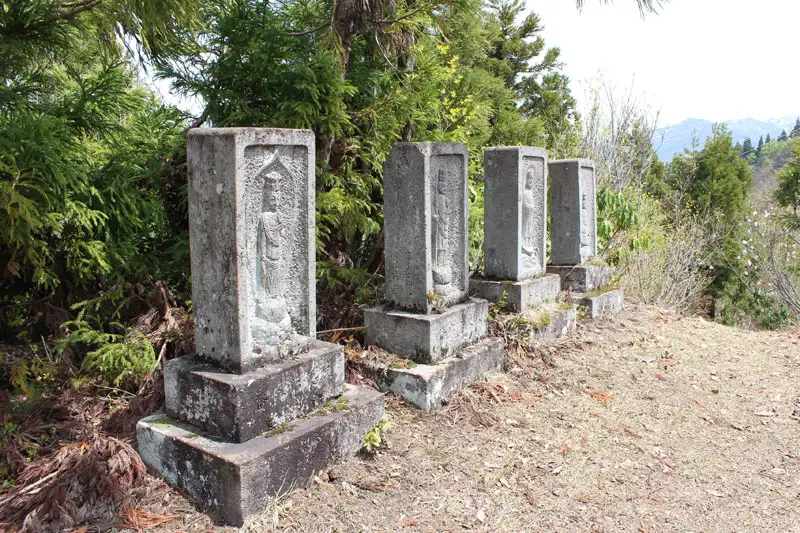 長い階段が続く坂戸山の観音尾根にたくさんの観音像が祀られていました。聖観音、千手観音、十一面観音など、石面が風化しかけたものもあります。