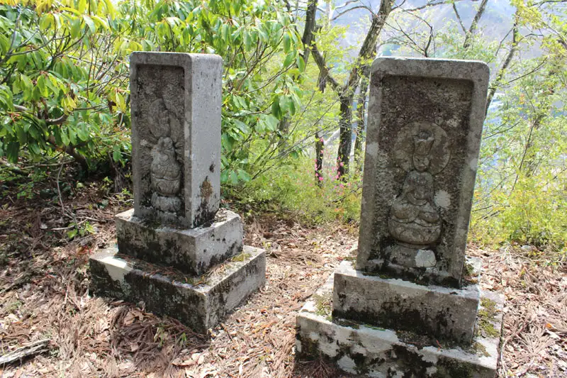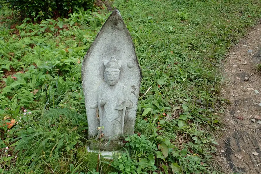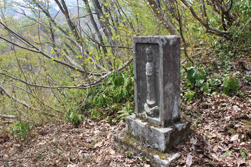 秋葉山は国道17号線に面した小さな頂です。山頂へと向かう登山道には坂東三十三観音霊場に因んだ石像が祀られていました。
