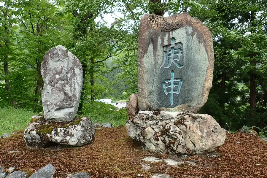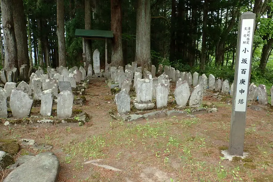 湯沢パークスキー場近くの県道に小坂百庚申塔があります。安政七年(1860)庚申年の建立と言われています。
