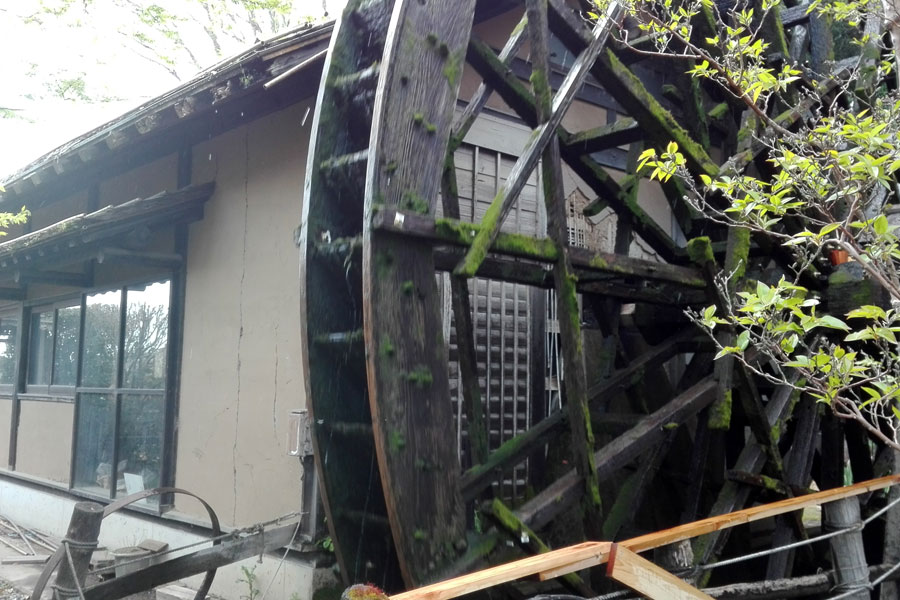 また大きな水車は実際にそば粉を引いているようですが石臼の杵は傍に立て掛けてありました。何時か2階席に上がれそうなときにまた訪れてみたいものです。
