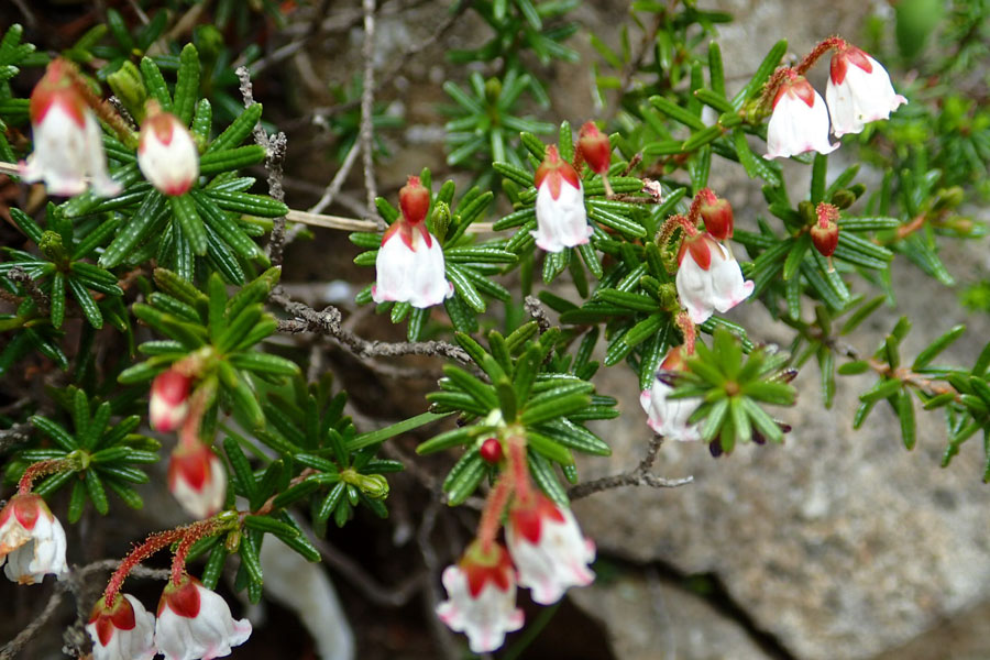 篭ノ登山・池ノ平に咲く花標高2200mを越える篭ノ登山や池ノ平の周辺は高山植物を簡単に楽しむことができるところす。篭ノ登山の登山道にはイワカガミやマイズルソウ、コケモモの花が咲いていました。