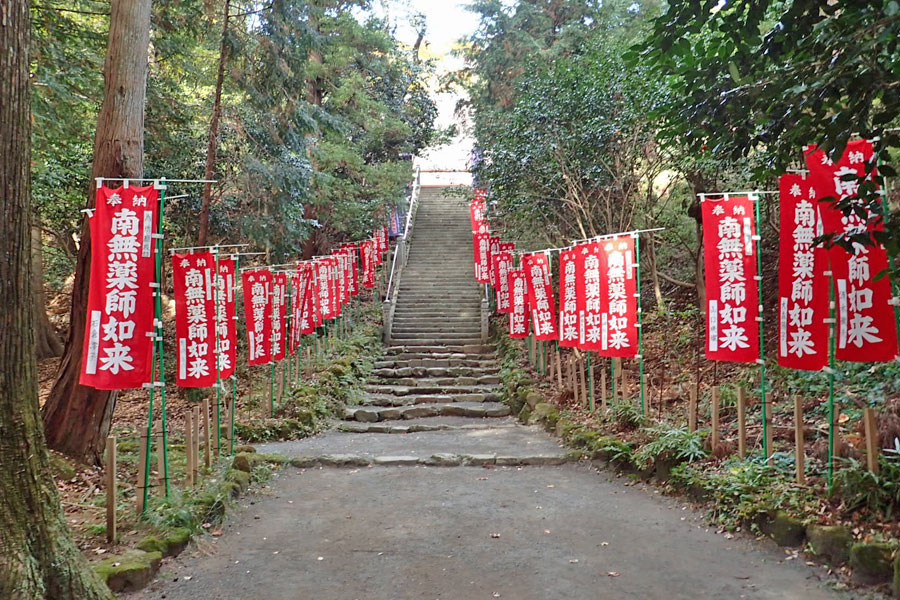 急な石段を登って行くと仁王門です。さらに石段を登って行くと日向薬師の本堂にたどり着きました。