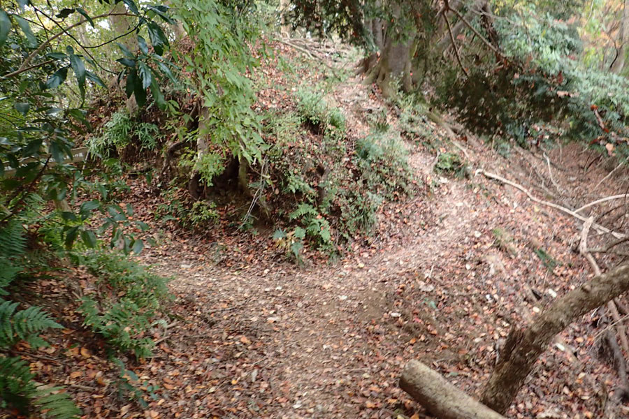 むじな沢の先には堀切のような地形が残っています。ネットなどを調べてもこの周辺に城跡があったと言う話は見当たりませんでした。