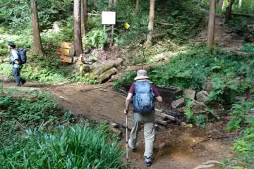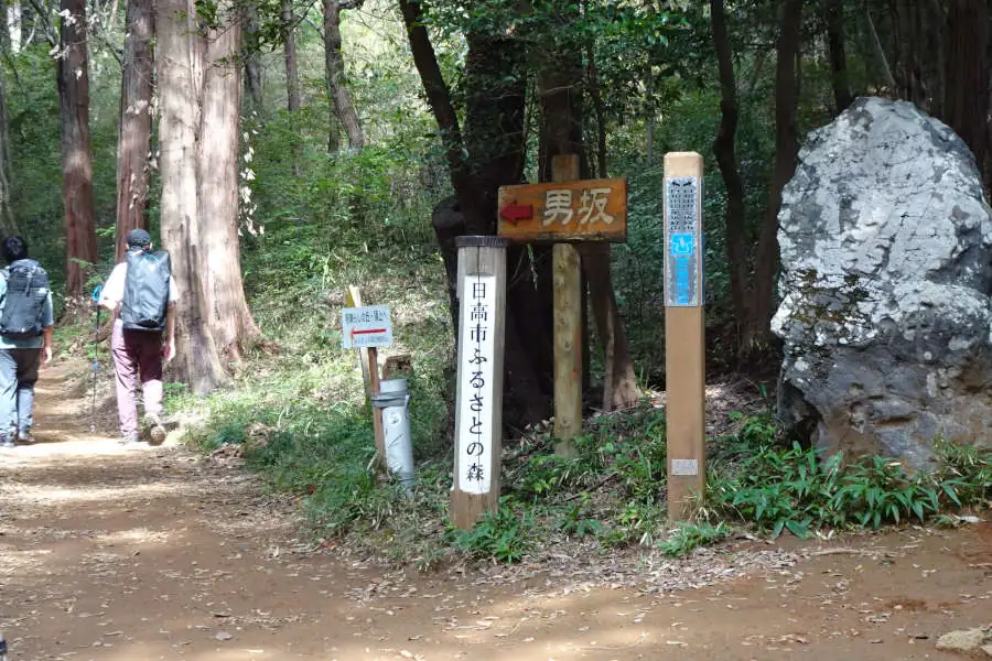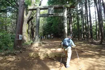 日和田山直下の駐車場に車を停め一の鳥居へ、ここは男坂と女坂の分岐となるところです。女坂を登っているのでしょうか、たくさんの子供たちの歓声が林の中から聞こえていました。先行する3人組は岩トレのようで、大きなザックやロープを背負っていました。