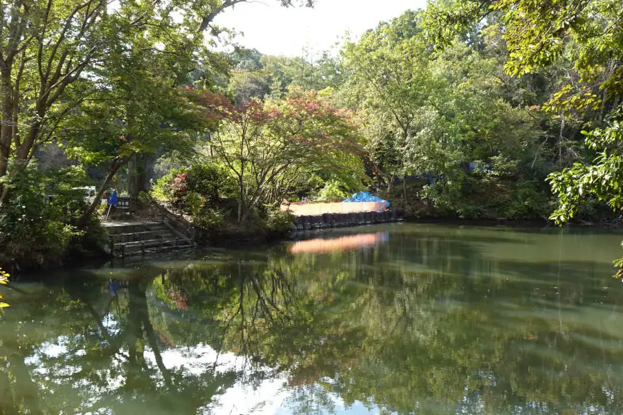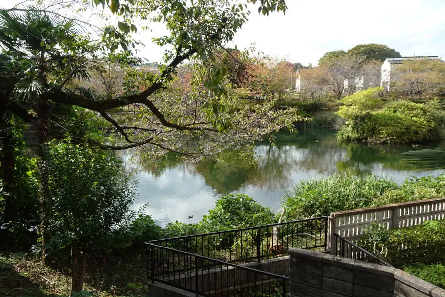 丹沢の山々を一望できる渋沢丘陵は秋から冬にかけての軽いハイキングの山として人気の山です。歩き始めは渋沢駅、駅前から住宅地の中をしばらく進むと今水親水公園です。南はだの村七福神と鶴亀めぐりのお寺、大岳院の湧水池です。まだ紅葉には少し早いようですが桜と紅葉の名所と言います。