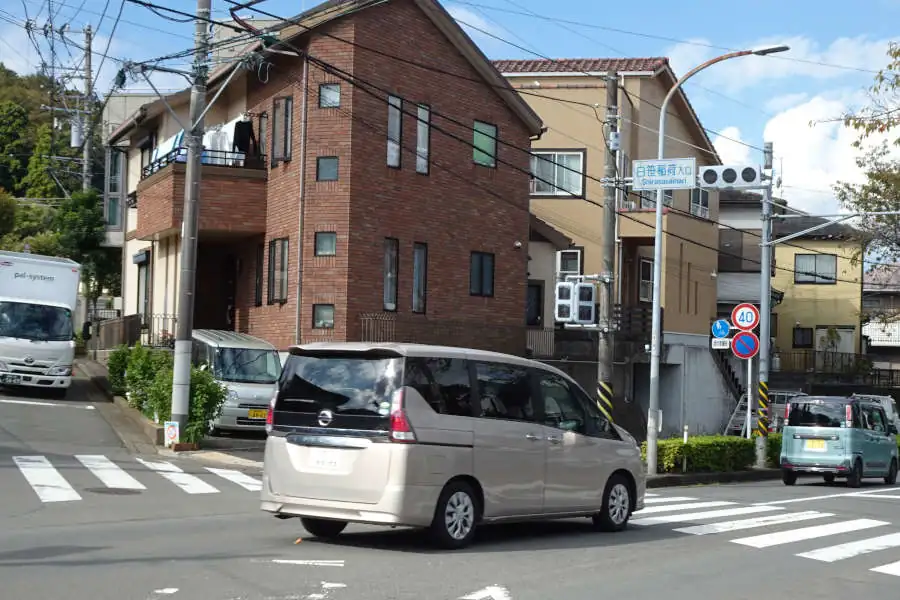 白笹稲荷入口の交差点から緩やかに坂道を登って行きます。振り返ると山頂を雲に隠した大山、それから続く丹沢のパノラマが目の前に広がっていました。