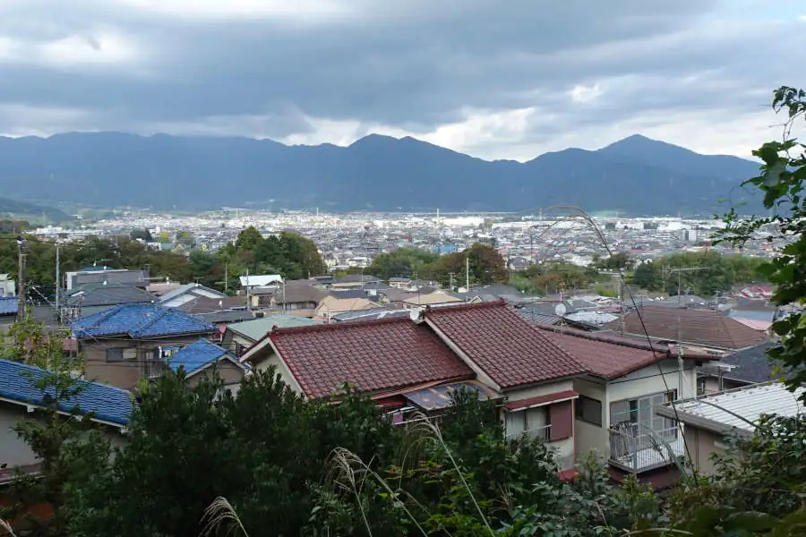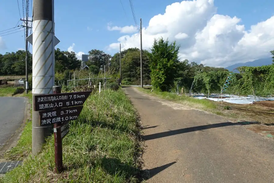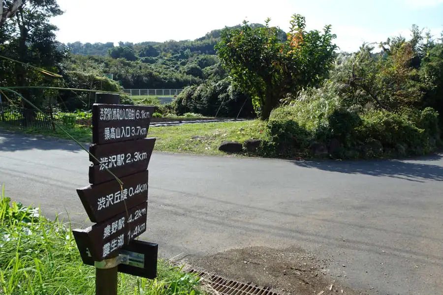 八国見山の登り口を越え緩やかに下ると頭高山への分岐、さらに下ると視界が開け渋沢の町並みの先に丹沢の山々が見えていました。
