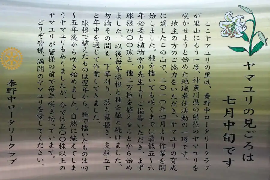 ヤマユリ苑地から暗いヒノキ木林の中を下って行くと展望が開けた耕作地、この近くを渋沢丘陵と言うようです。さらにしばらく歩くと栃窪の休憩所です。