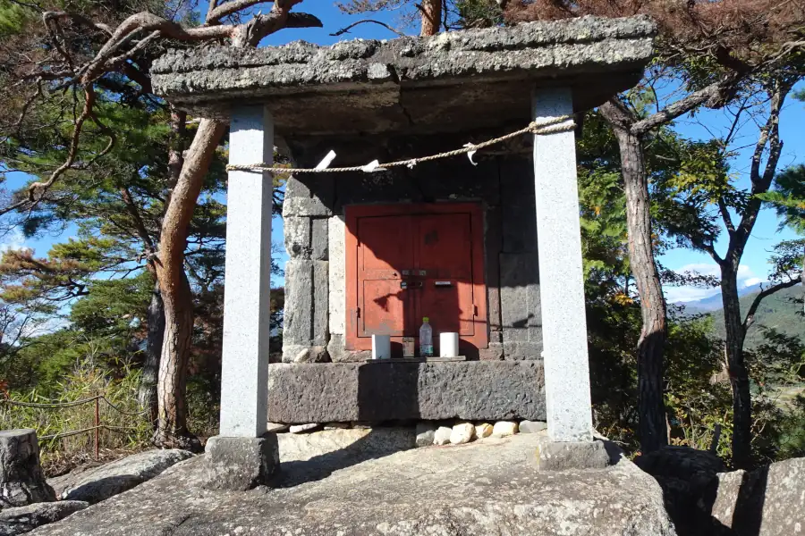 石祠の裏に立つと甲斐駒ヶ岳、白い雪を被った八ヶ岳や茅ヶ岳の頂を見付けることができるところした。