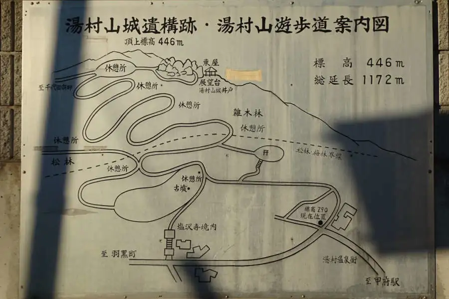 緑が丘スポーツセンター11:12~湯村山11:43/12:17~法泉寺山下12:42/50~鳥獣センター分岐13:02~八王子山東屋~八王子山13:42/14:15~湯村温泉分岐~天狗山14:50/15:00~天狗山登山口15:17/22~塩澤寺15:50/57~緑が丘スポーツセンター16:22