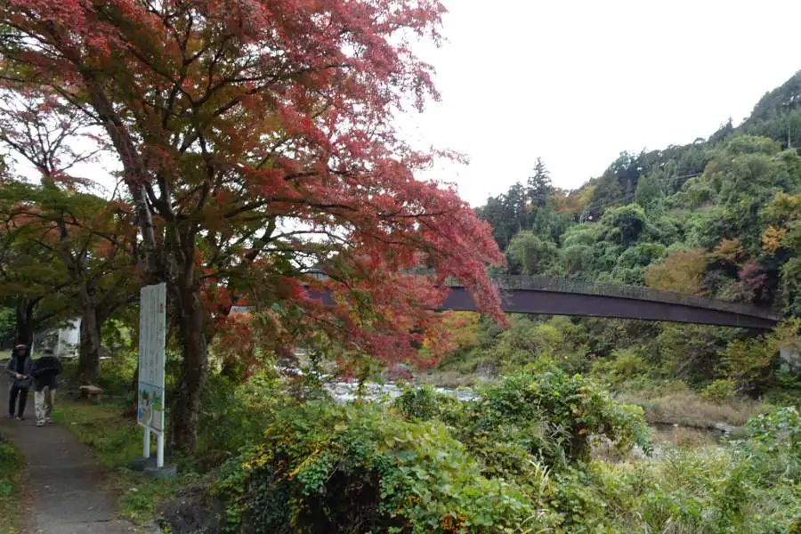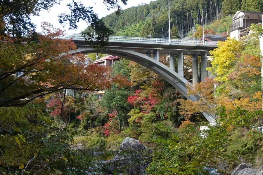 紅葉の御岳橋をくぐりしばらく歩くと杣の小橋です。ここから紅葉の坂道をわずかに登ると車を停めた御岳苑地でした。