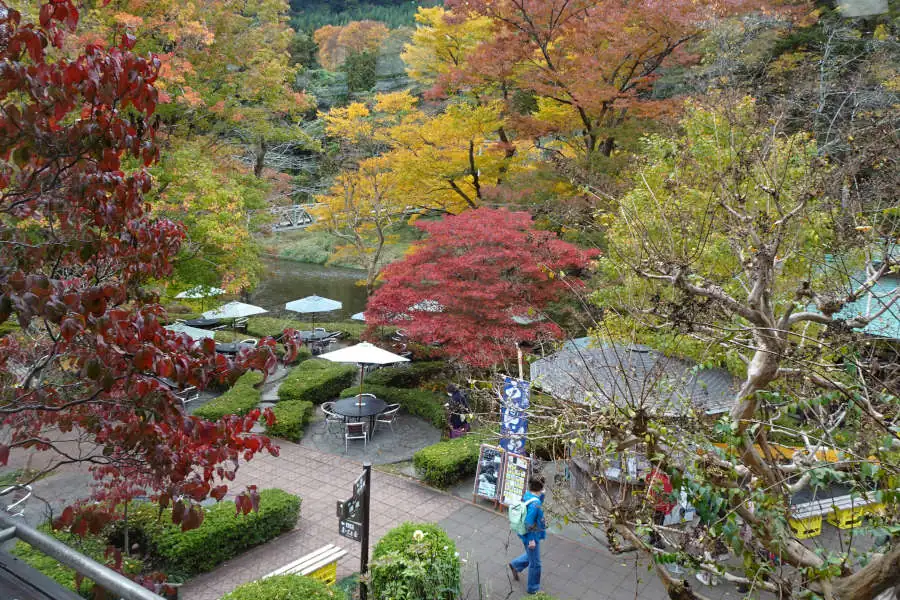 紅葉を眺めることのできる清流ガーデンはたくさんの人で賑わっています。利き酒を目当てにしているのか外国からのお客さんも目立つようです。
