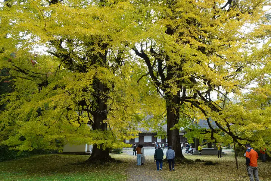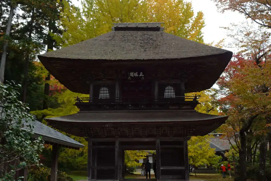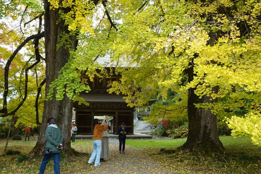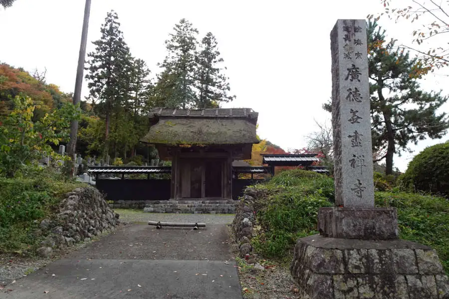 狭い坂道を登って行くと廣徳寺です。駐車場には平日にもかかわらずたくさんの車が停まっています。総門をくぐると正眼閣の扁額を掲げる大きな山門です。その後ろには大イチョウが黄色く色付いていました。