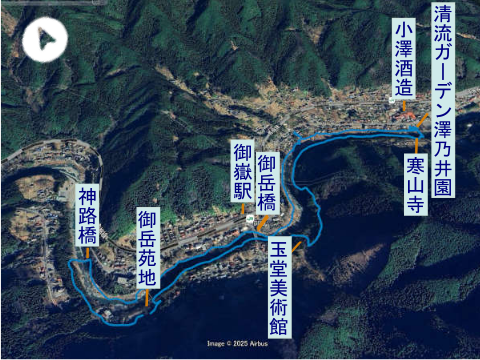 御岳苑地9:26~神路橋~お山の杉の子11:19~清流ガーデン澤乃井園10:47/12:16~楓橋~寒山寺12:12~玉堂美術館12:42~御岳苑地13:03