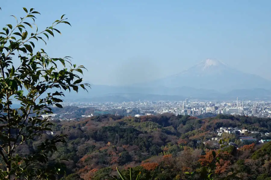 目の前には鎌倉の町並み、白い雪を頭にのせた富士山がそびえていました。