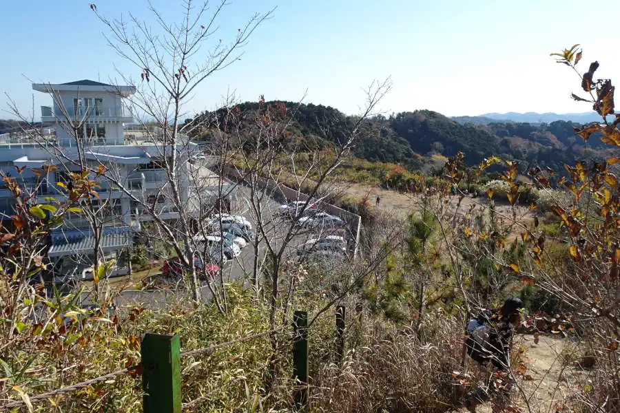 やがて小さな岩場を小さく登ると大平山の展望台です。目の前は鎌倉カントリーのクラブハウスです。その先には大楠山などが見えるはずですが空気が濁っているのか見付けることができませんでした。