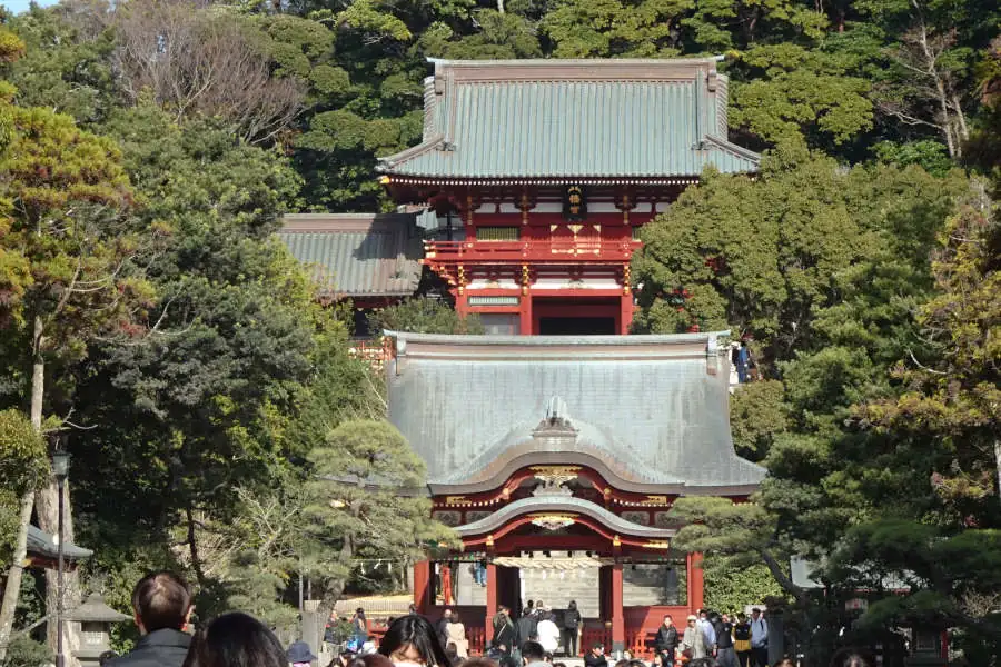 住宅地の中を歩くと鎌倉宮、さらに観光客と一緒に歩いて行くと鶴岡八幡宮です。平日にもかかわらずたくさんの観光客で賑わっています。