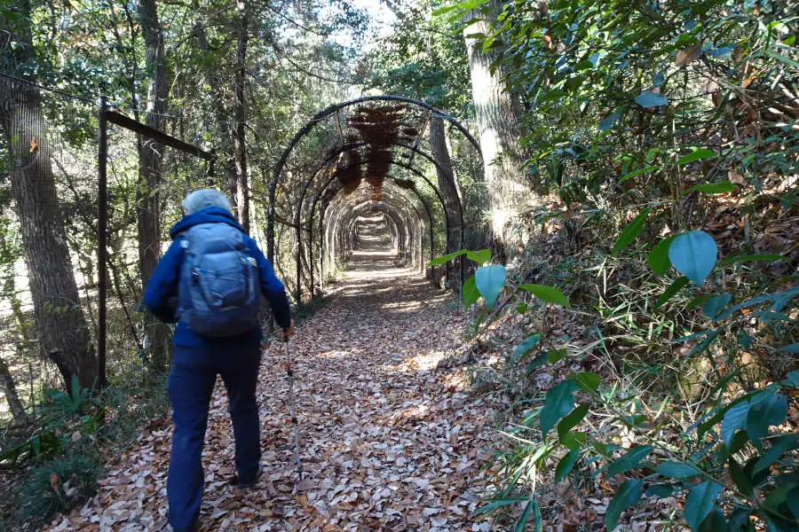 ここからは奥武蔵自然歩道のハイキングコースです。飯能駅から北鎌湖へ続く11kmのハイキングコースで、巾着田や日和田山、物見山など気軽な山歩きができるところです。