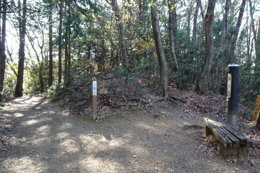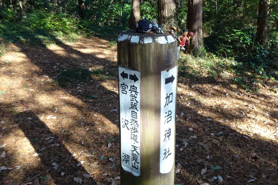 よく整備された道には加治神社、東飯能駅へと続く道が分かれています。右手の雑木林は飯能桜の森、春にはお花見ができる所のようです。