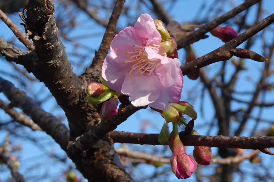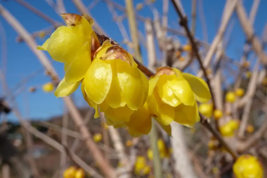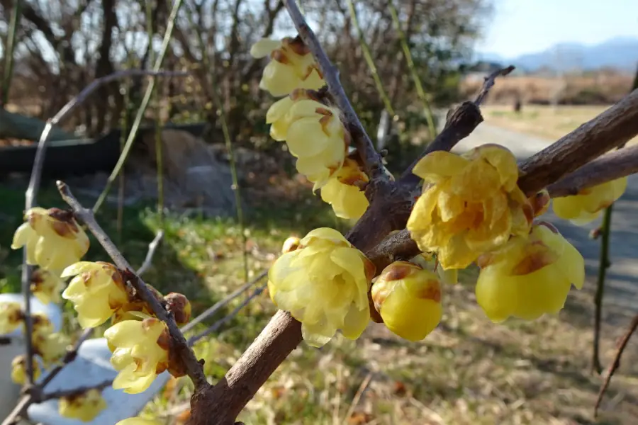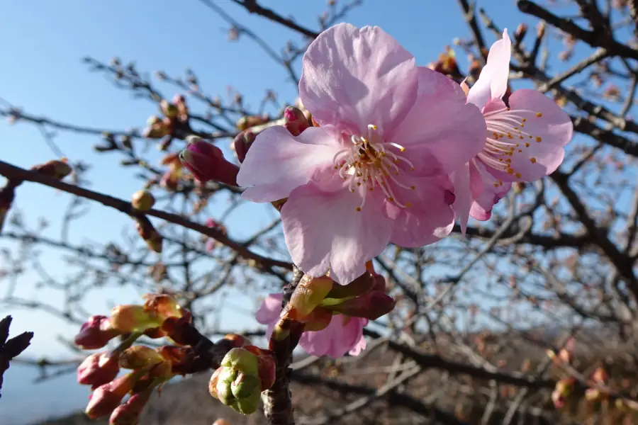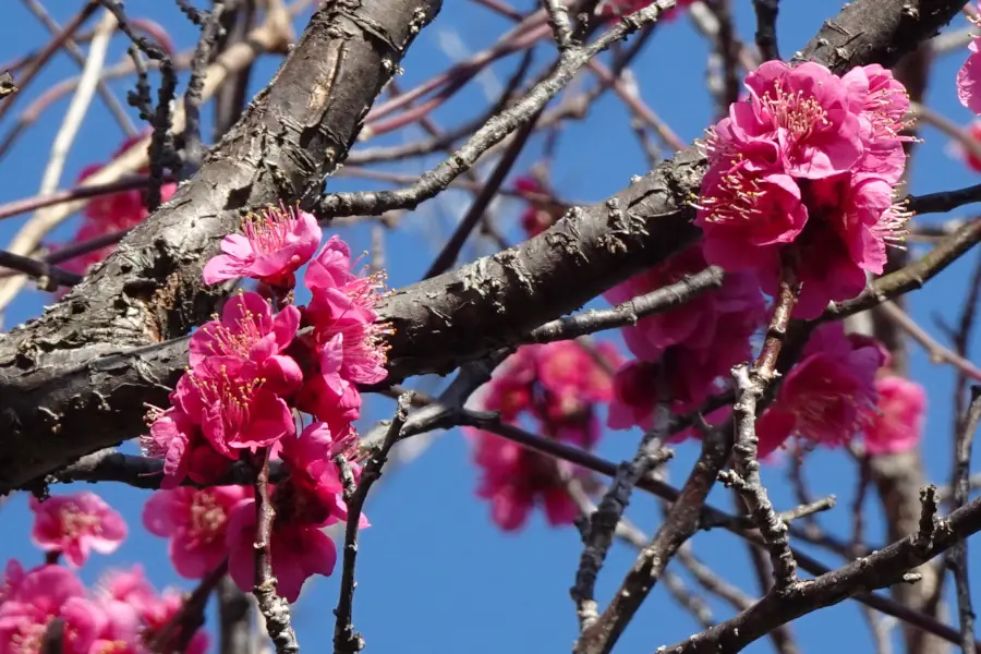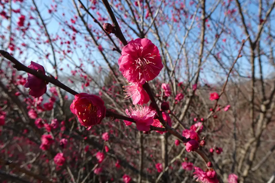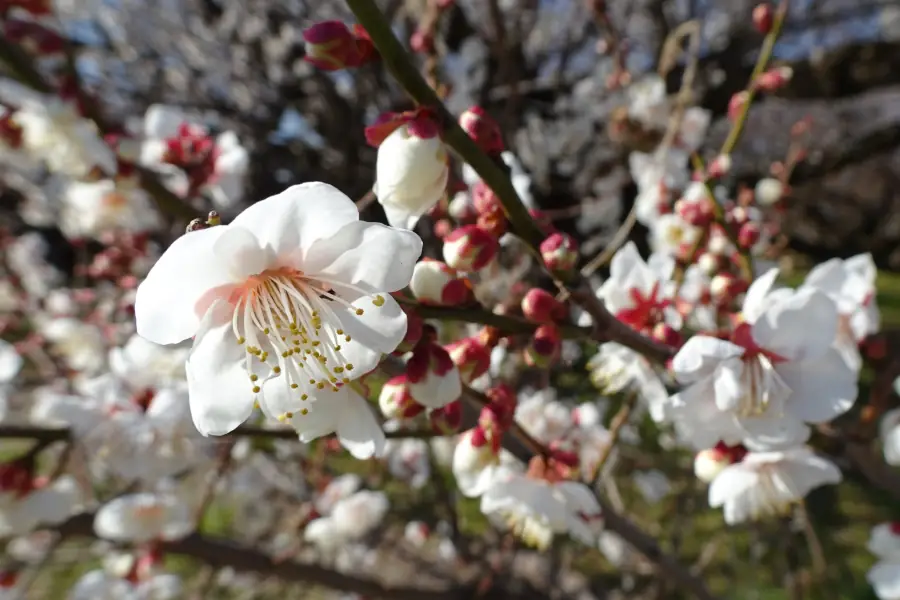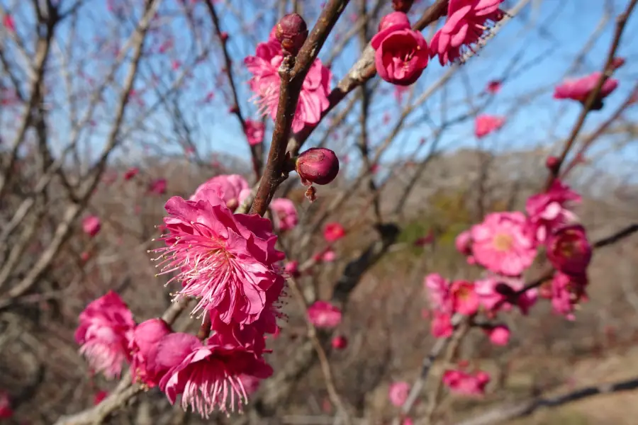 おおいゆめの里は梅や桜などが咲くところです。明るい日差しを浴び紅梅や白梅、気の早い河津桜も咲き始めていました。