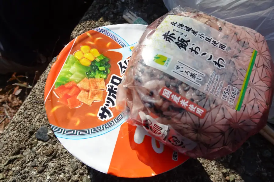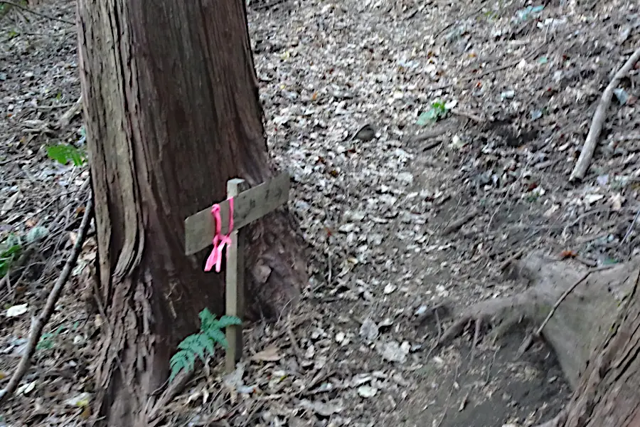 しばらく登った分岐は曽我祐信宝篋印塔へ下って行く道を分けるところです。この道端に腰を下ろしてお昼ご飯にしました。