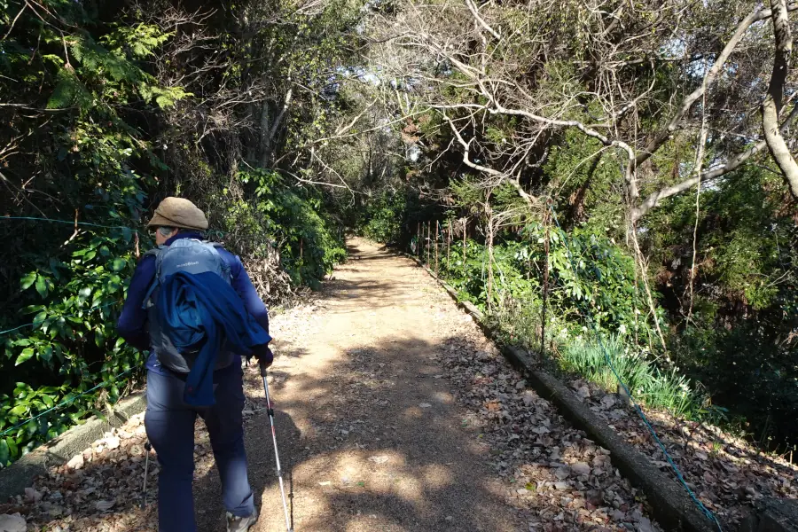 ここからは車が通れそうな道が続いています。上大井側から縦走してくる人も、気軽なハイキングコースということもあり単独行の初老のハイカー、スマホを片手に歩く若い女の子もいました。